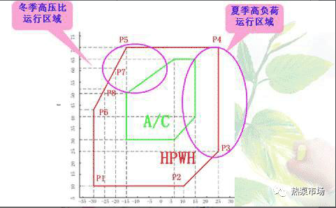 圖1 空調(diào)壓縮機(jī)(A/C)和熱泵壓縮機(jī)(HPWH)運(yùn)行范圍對(duì)比圖